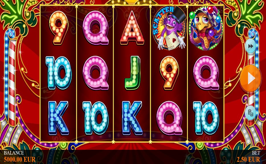 - Symbols: The game includes circus-themed symbols such as clowns, acrobats, and animals, each with different values.